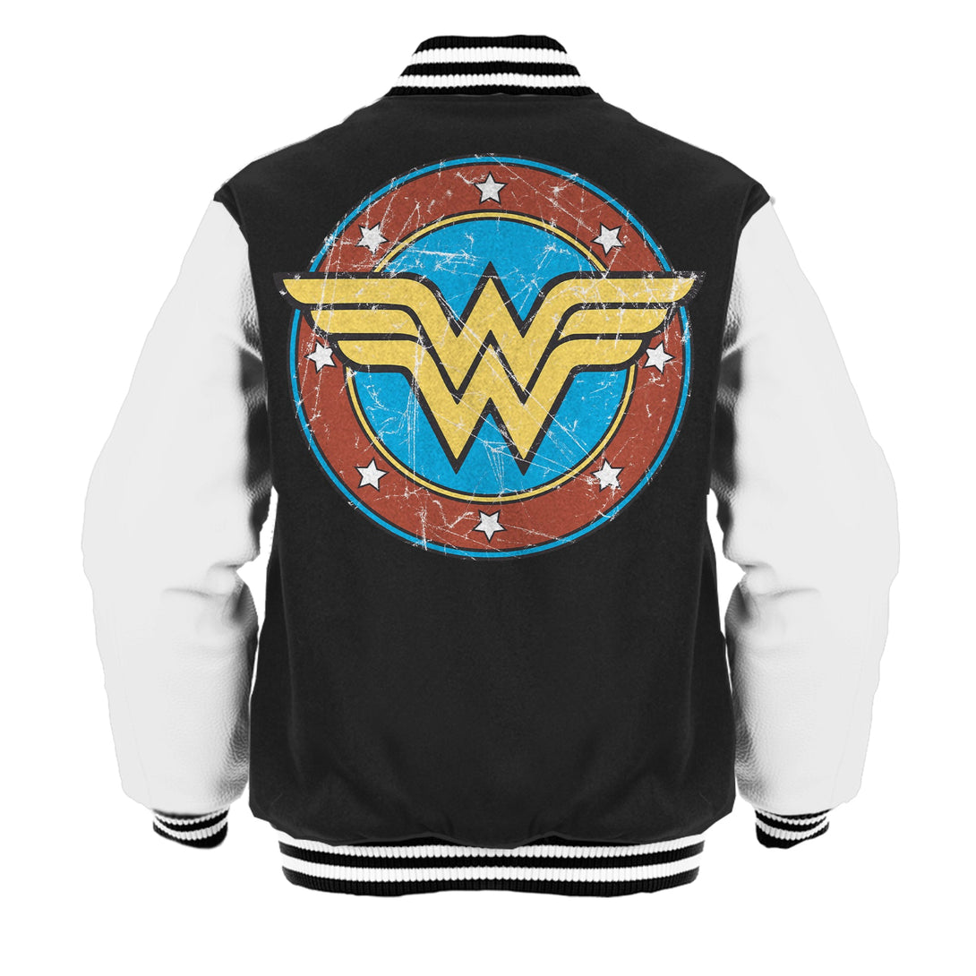 DC Comics Wonder Woman Logo Circle Dist Official Varsity Jacket (Black)