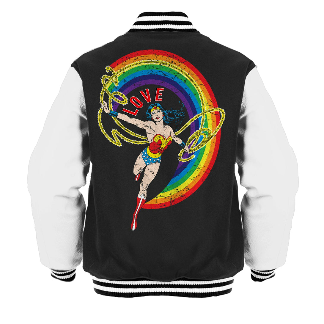 DC Comics Wonder Woman Rainbow Love Official Varsity Jacket (Black)