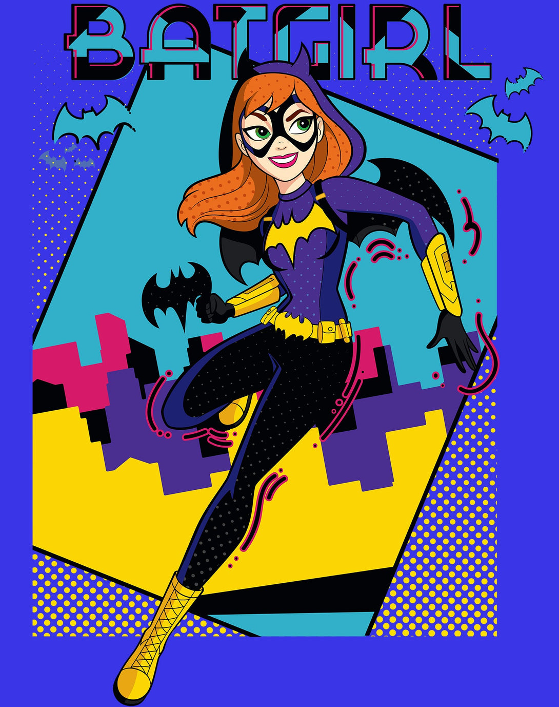DC Super Hero Girls Batgirl Pop Wow Framed Official Kid's T-Shirt (Royal Blue)